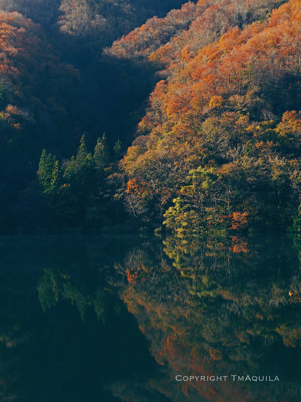 湖面に映る晩秋。おはようございます